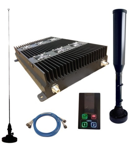 Although the jammer operates in wide frequency range (20...2700 MHz and 5100...5900 MHz optional), only two wide band emitting antennas with omni-directional pattern are used in this jammer.